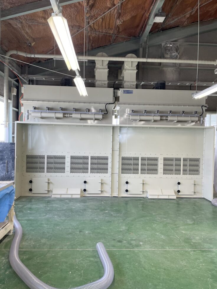 集塵機 SCBー7.5W型クリーンブース 納入製品SCBー7.5W型クリーンブース 完工R7年7月 設置場所愛知県小牧市 導入ポイント本機の前で洗面台などの仕上げ作業(バリ取り、研磨等)を行って、作業環境や労働環境の向上に取り組んでいます。